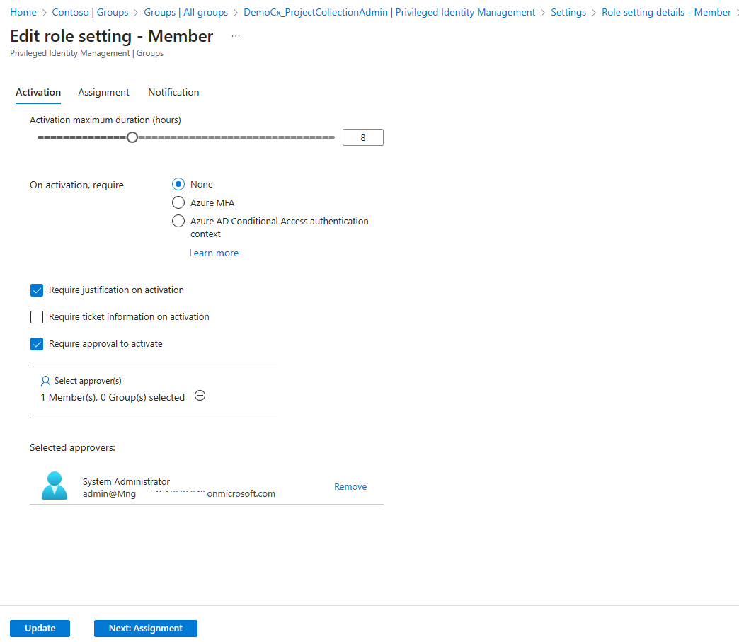 4. Now select Eligible assignments tab and click on Add assignments to assign user (Demo User) to the group who can activate the PIM.